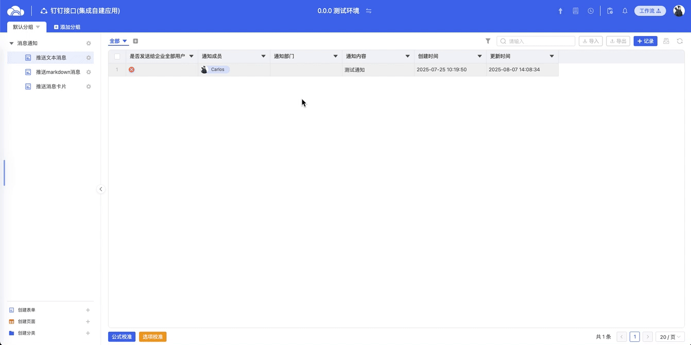 注意:此部分展示了消息通知接口消息卡片类型使用后的效果。