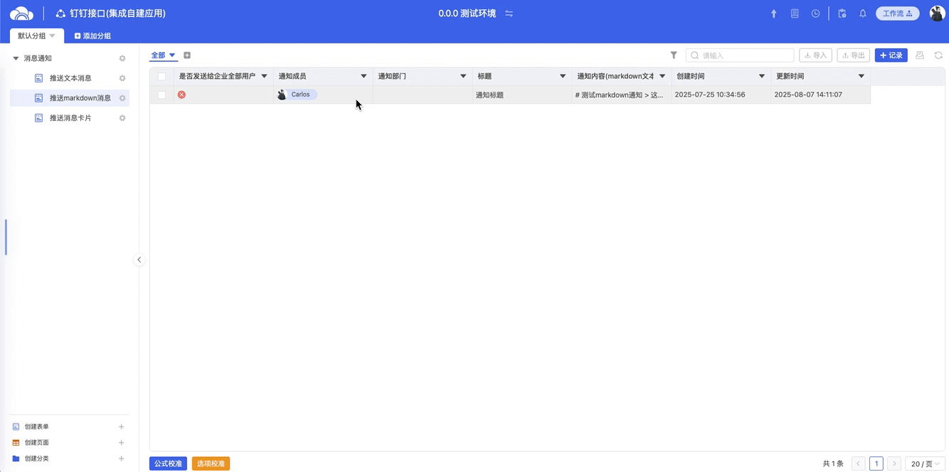 通过此接口,您可以向指定的成员或部门发送文本消息、Markdown格式信息、